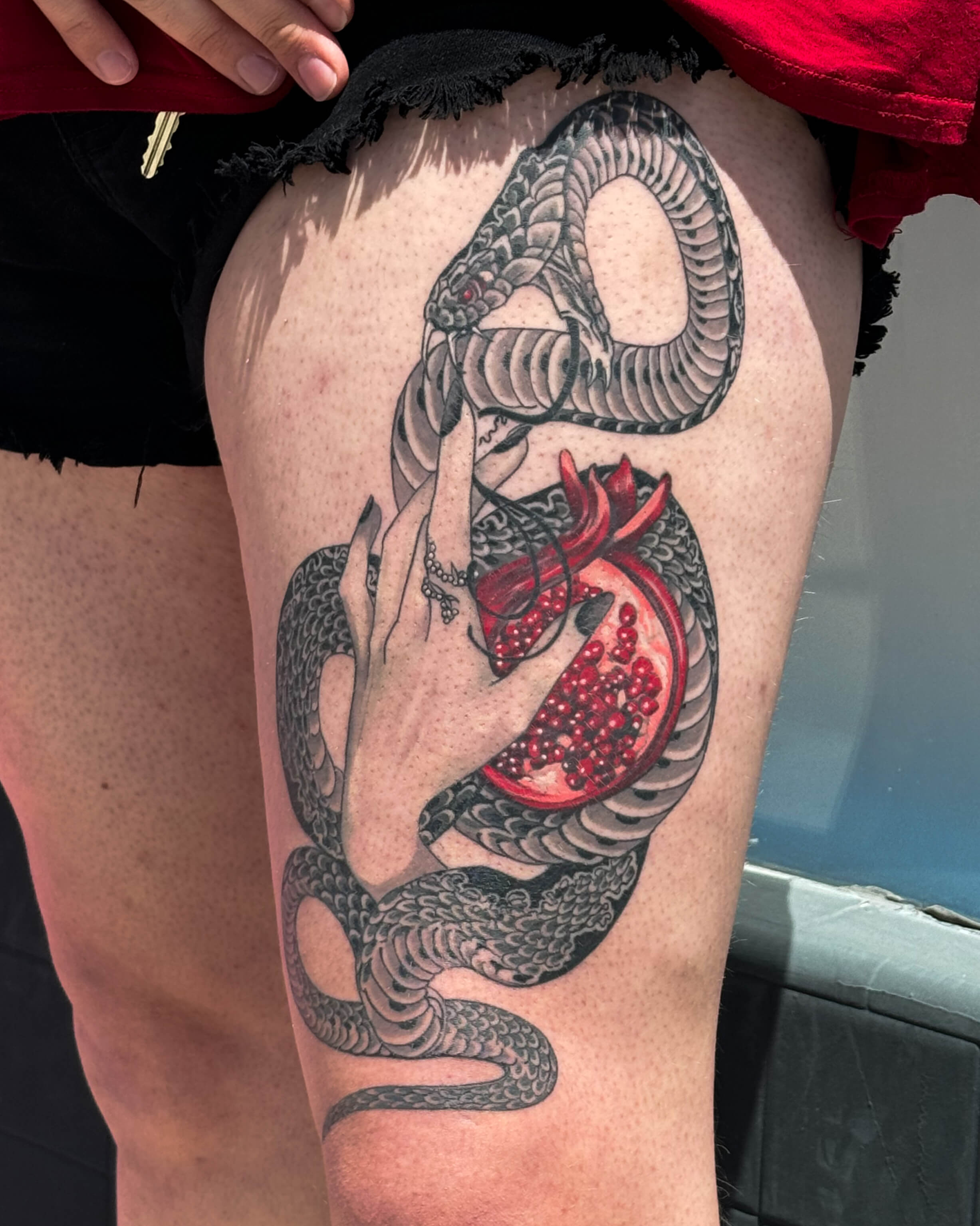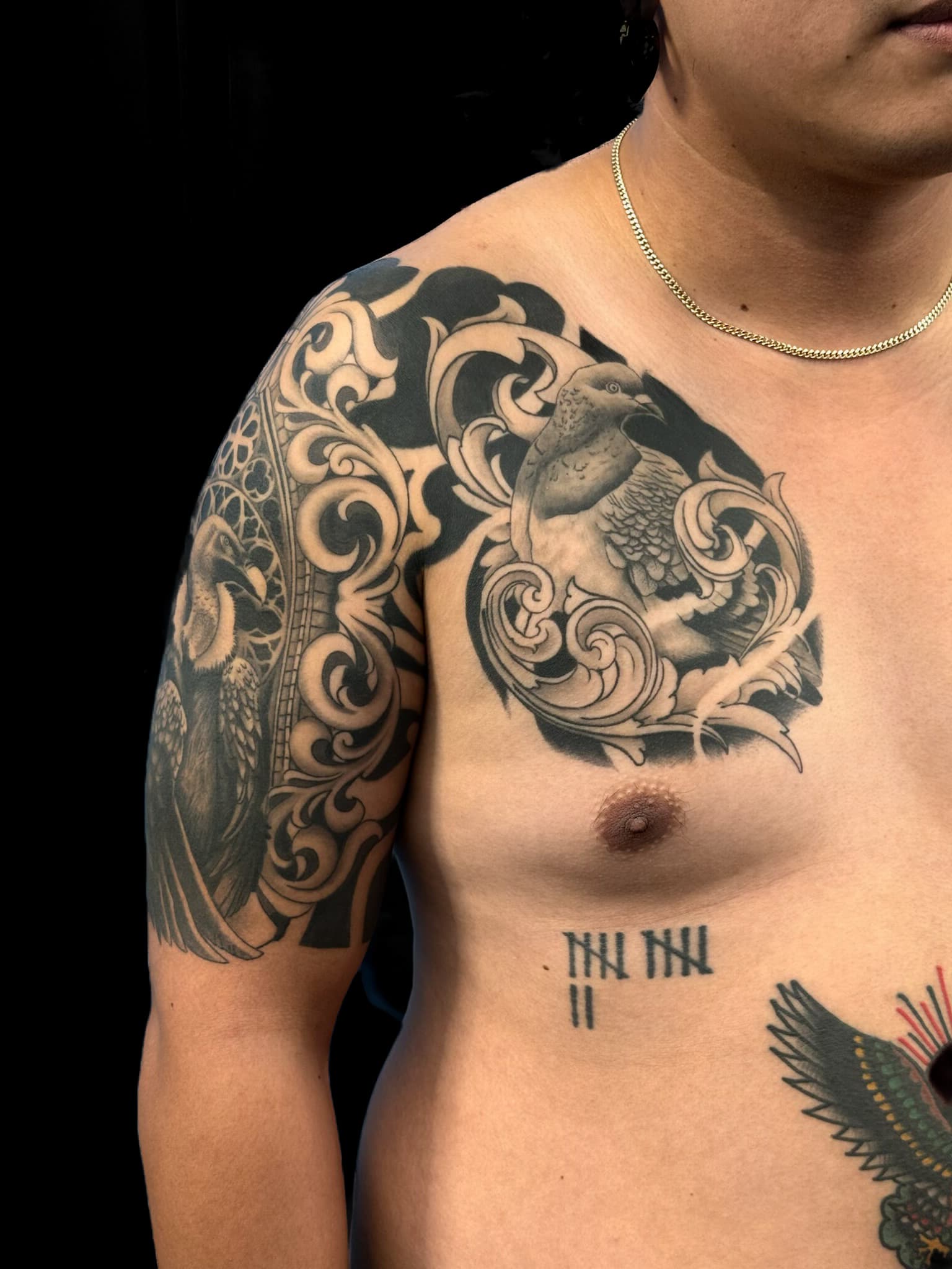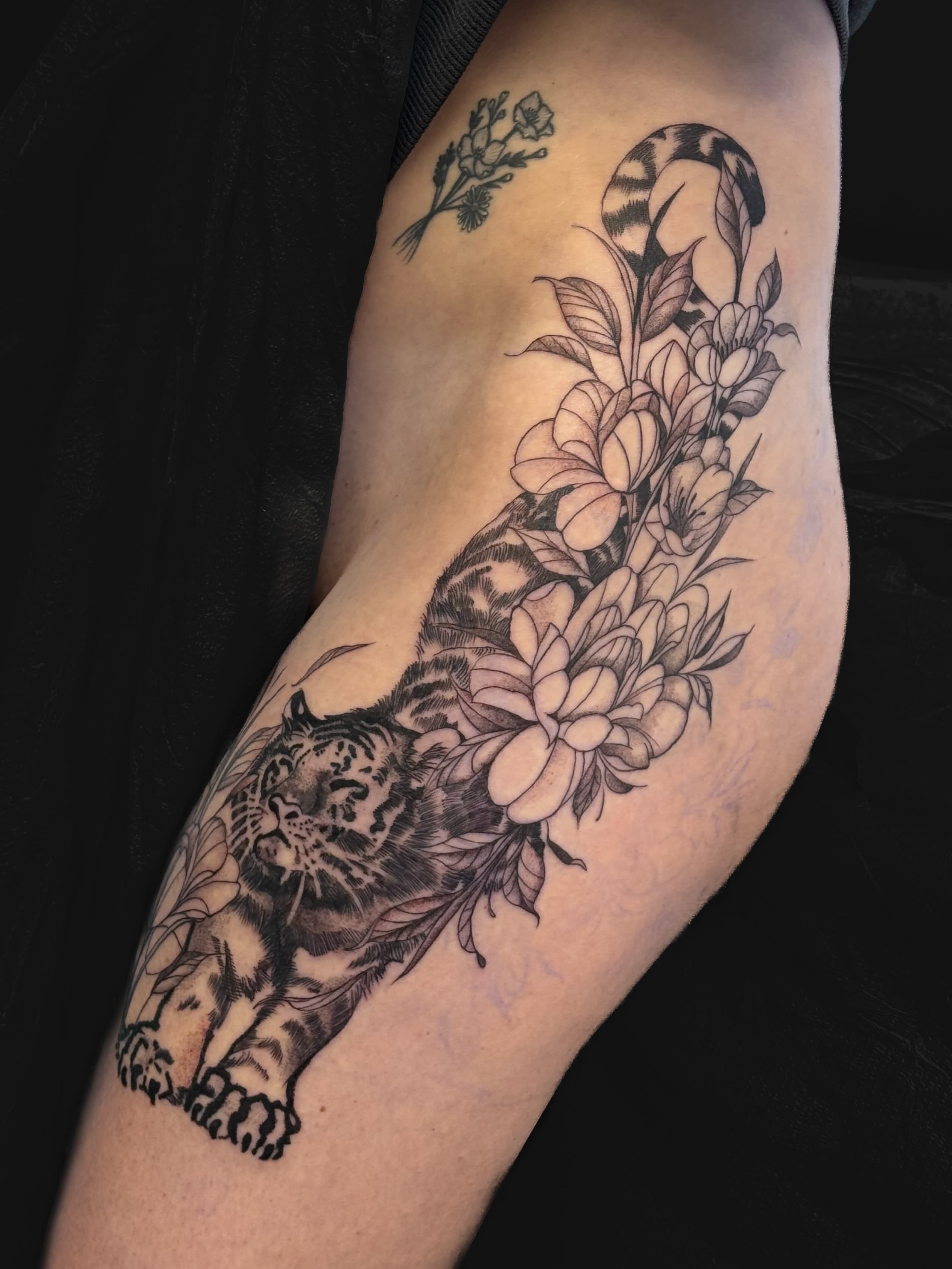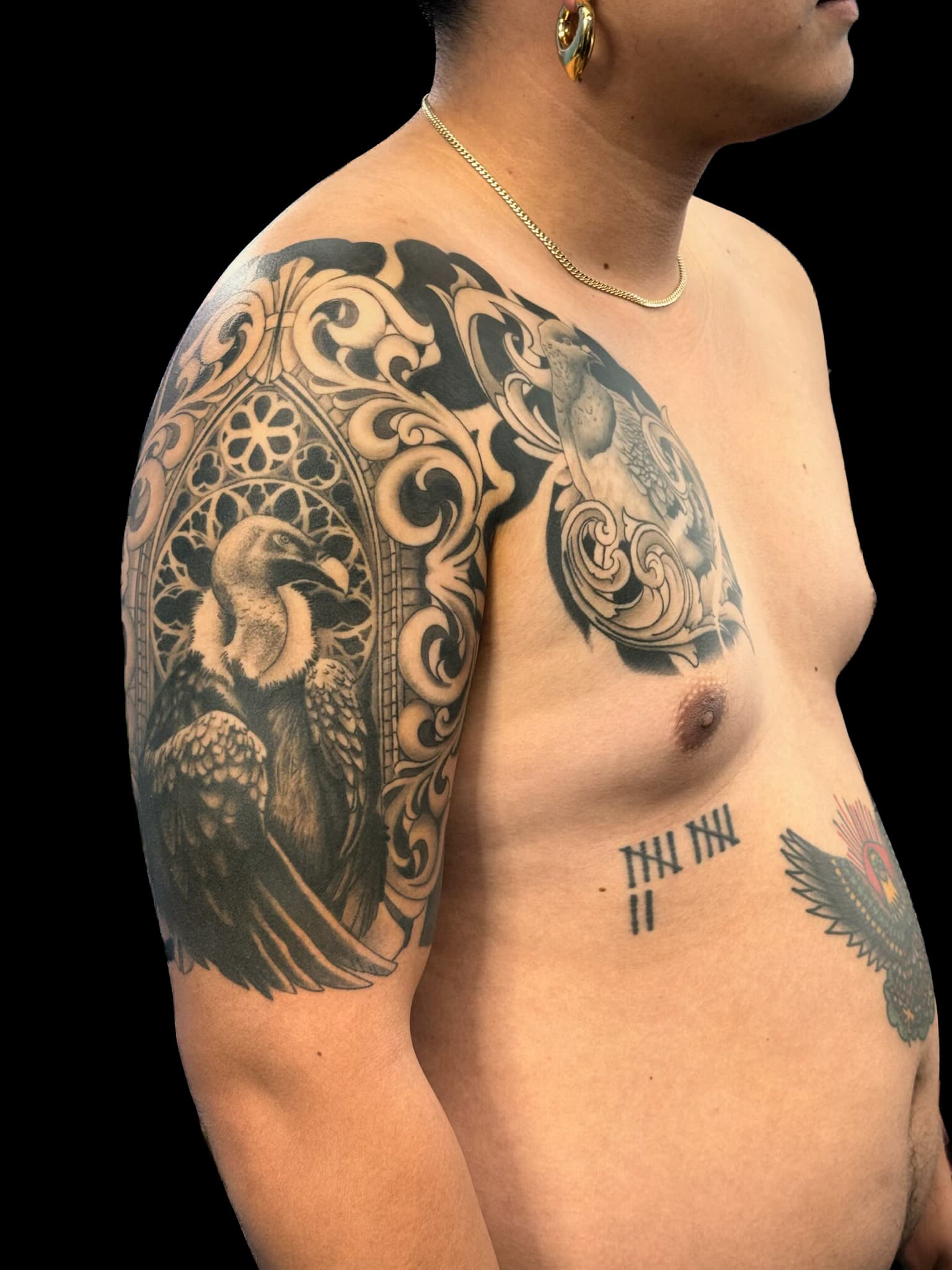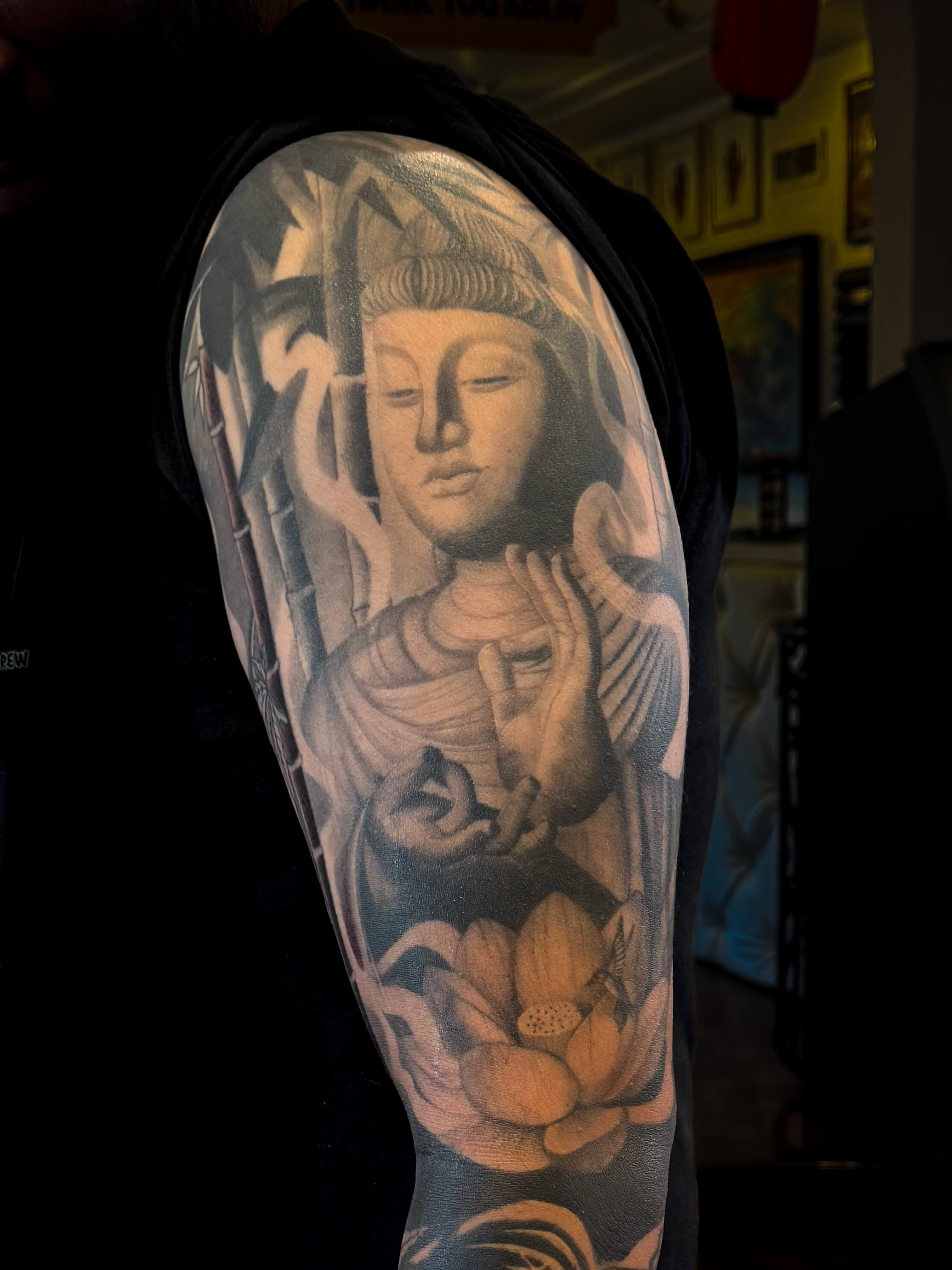 Aimee is a tattoo artist with a disciplined foundation in black and gray realism, where she trained to master detail, contrast, and longevity. Over time, her focus shifted toward Japanese tattooing, blending its deep-rooted tradition with a more modern, expressive vision. Her work is defined by precise fine lines, bold yet balanced color, and a strong emphasis on proper healing. Drawing from her neurodivergent perspective and Buddhist practice, Aimee creates tattoos that explore transformation, spirituality, and personal meaning—each piece designed to feel both intentional and lasting.